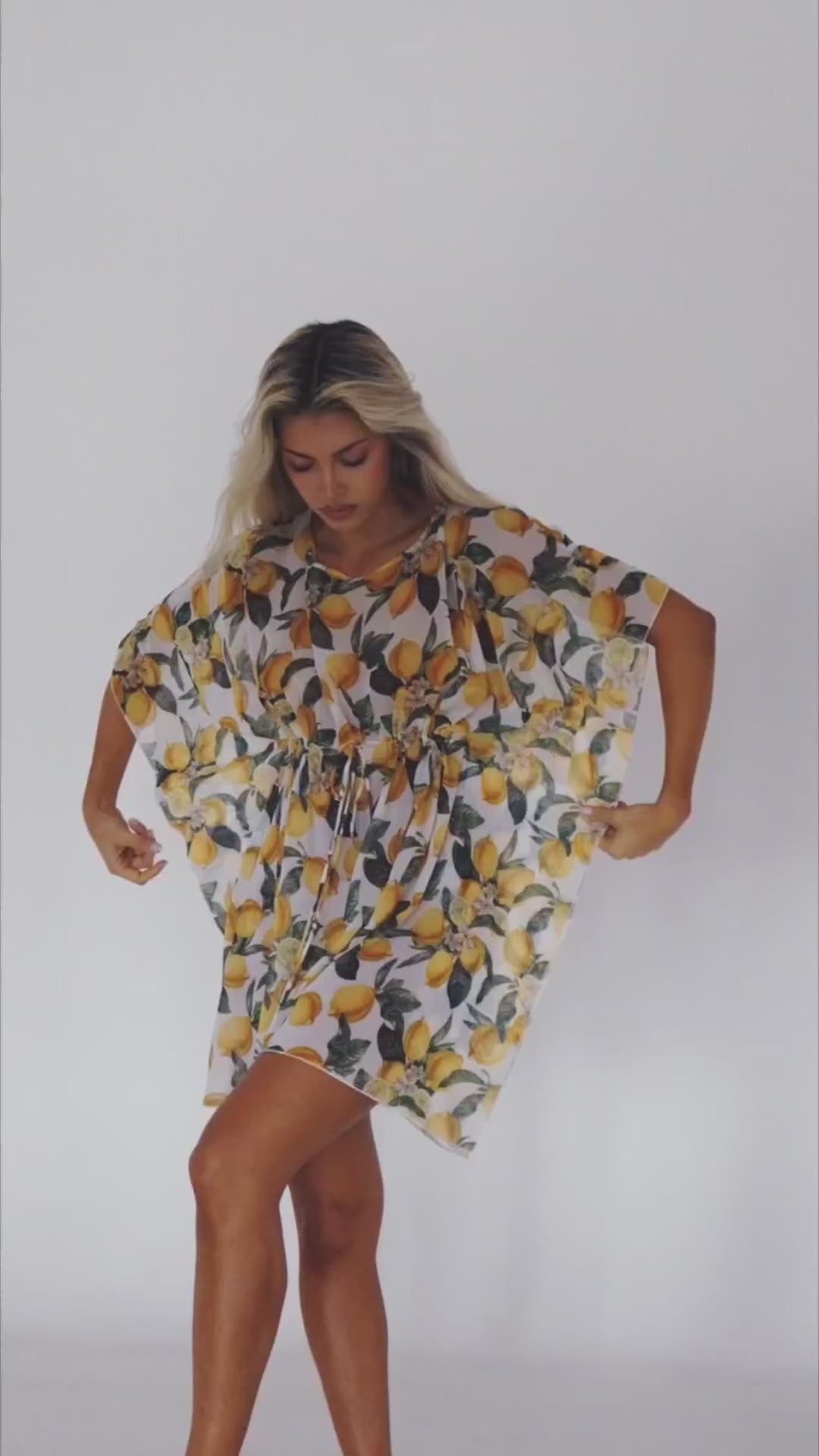 Its lemon print evokes the freshness of Mediterranean gardens and the glamour of endless days on yachts and terraces by the sea.